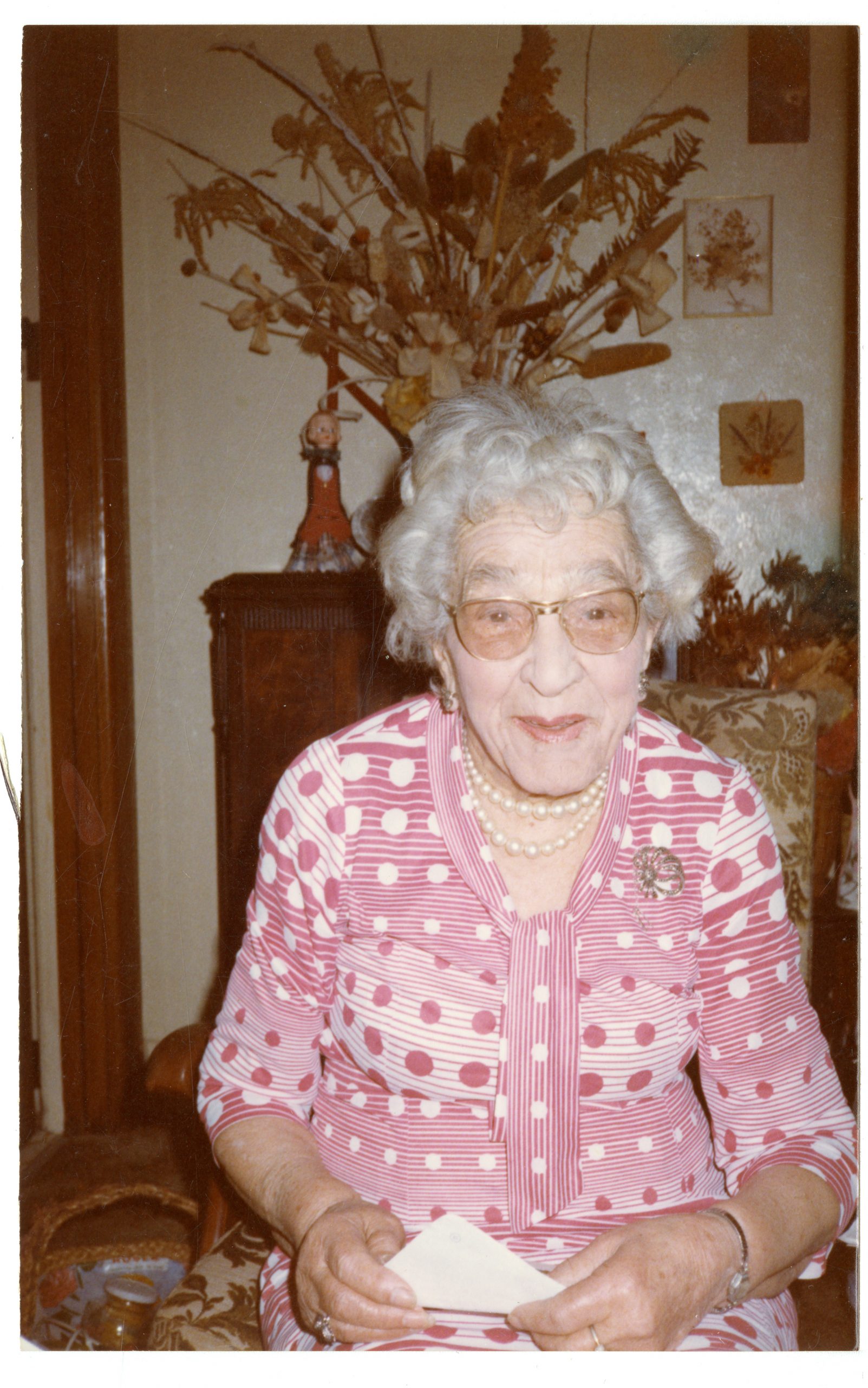 To say that Esther Batstone (1888–1992) led a full life is an understatement, a life that appears etched into her face. These two photographs show Esther in the latter years of her life. The first, aged 92 at home in Guinea Street and still looking sprightly and the second, aged 103 at the Marianella Aged Care Home, Albury.