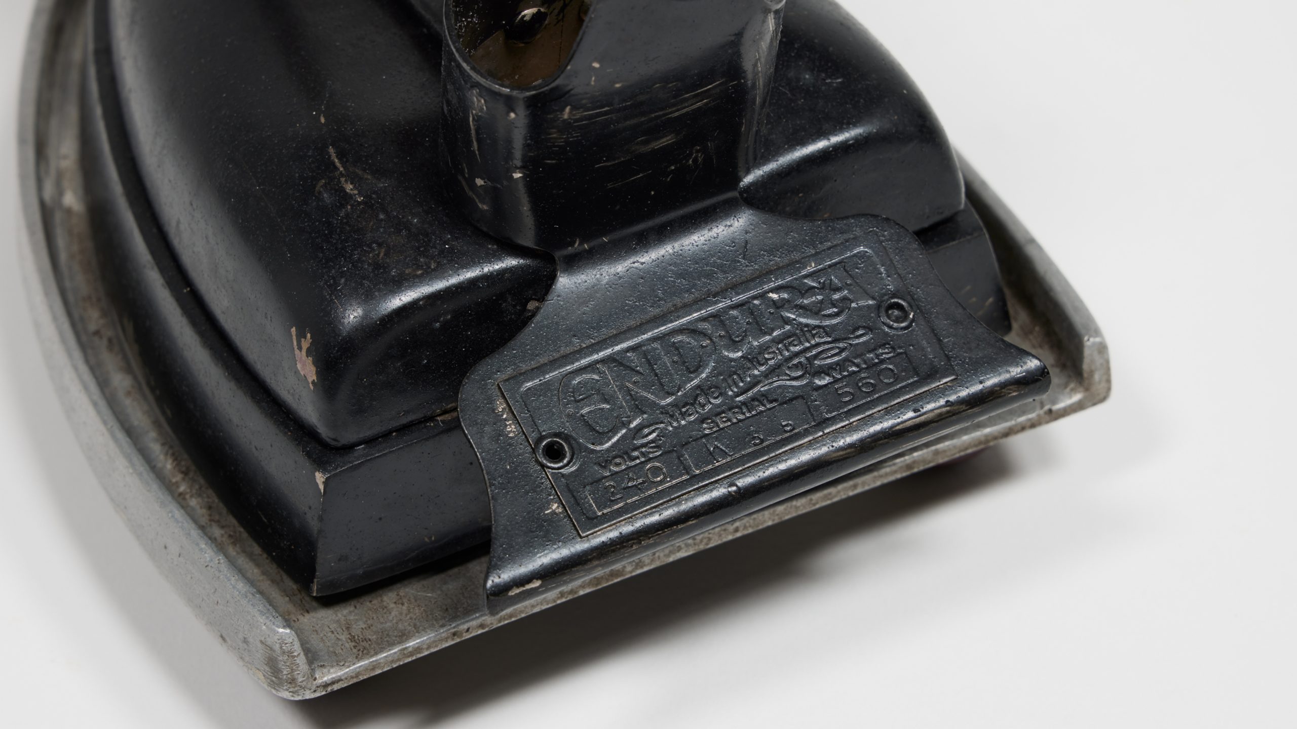 The advent of electrical irons, like the one pictured, must have seemed a blessed relief to maids and housewives. The first electric irons debuted in the 1880s but were not widely adopted partly because few Australian households had electricity. American ‘Hotpoint’ electric irons, first sold in Australia around 1914, were a popular product for decades. From the late 1920s, they were manufactured in Australia by the Australian General Electric Company. Early electric irons lacked a thermostat to maintain a steady temperature. Rapid improvements were made from the 1930s to 1950s including the introduction of steam technology.